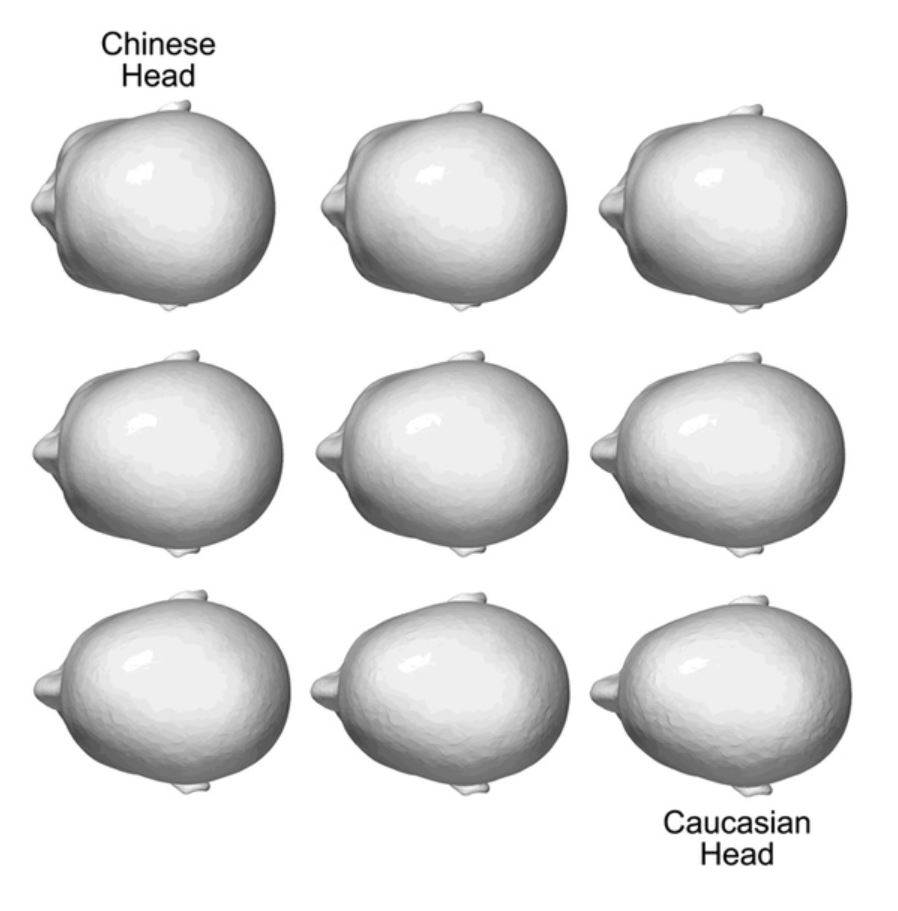 以下の記事でも語ったことがあるが、頭の形は人種ごとに違う。例えば、白人と黒人、アジア人(東アジアや東南アジア)の顔が全然違うのは、そもそも骨レベル(コアな部分)で違うからである。