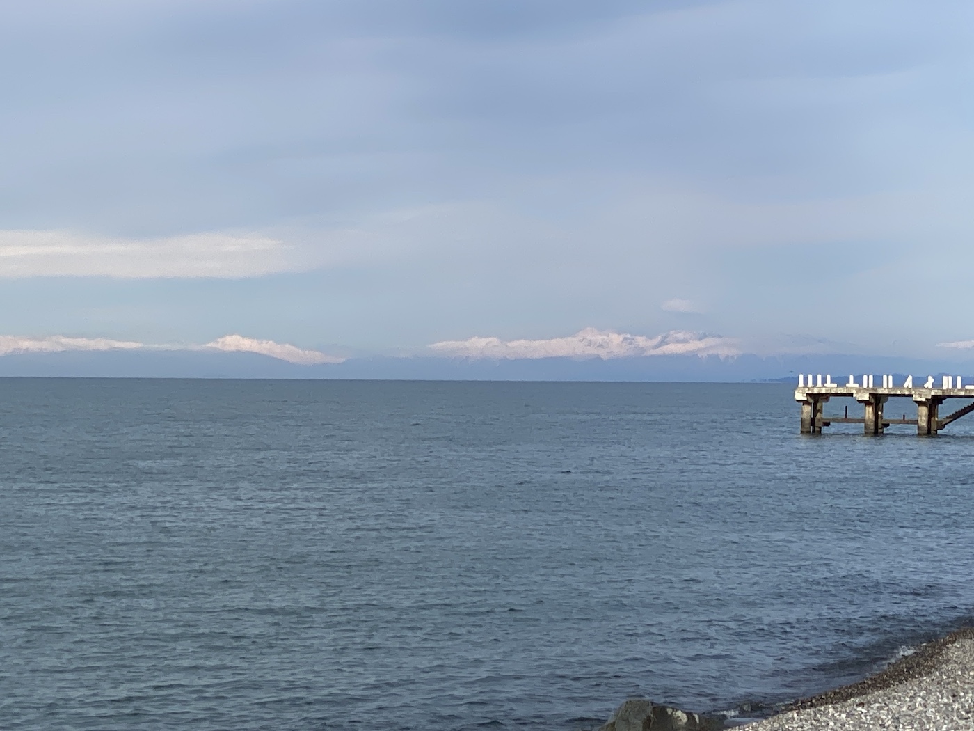 2024年2月頃撮影。冬のバトゥミからはこのように雪化粧した山脈が見れるのでおすすめ!